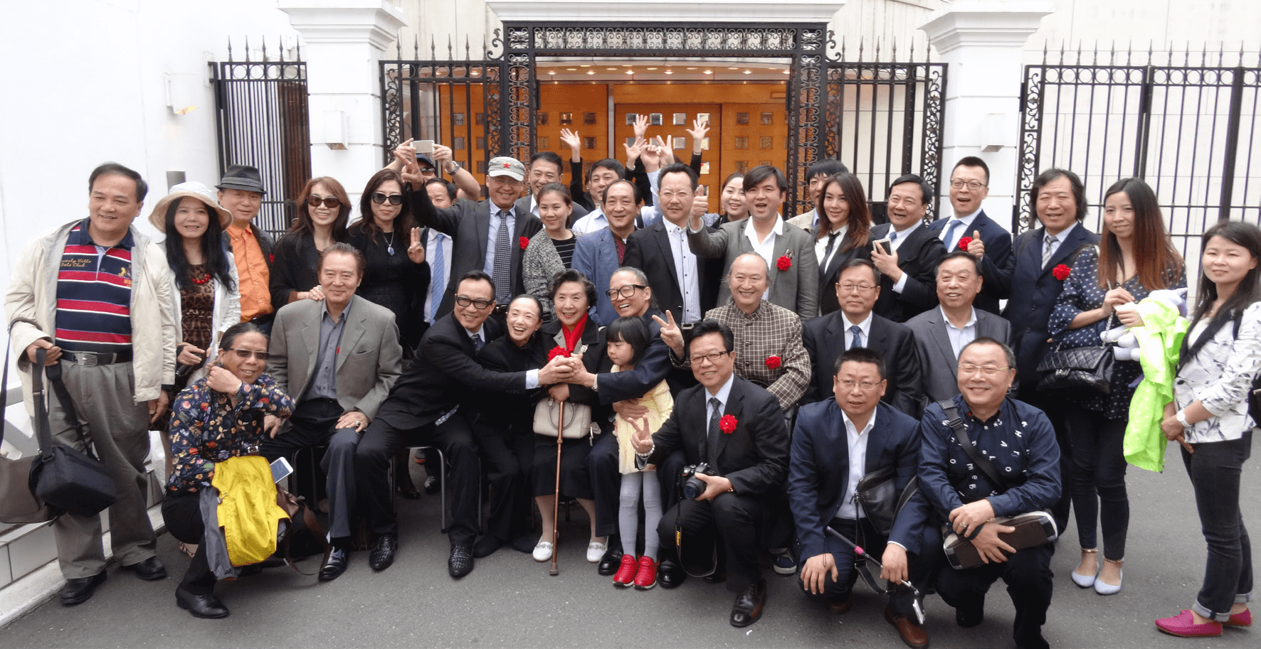 中华人民共和国驻日本国特命全权大使程永华与协会名誉会长赵青共持其代表作《竹鹤图》在开幕式现场,与所有参展画家及众多嘉宾合影留念